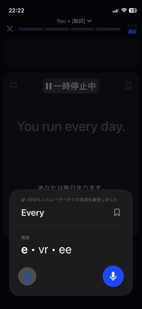 Speakが良いのは、基本は自動でテンポよく進みますが、要所で「自分で進める」ボタンも用意されている点です。