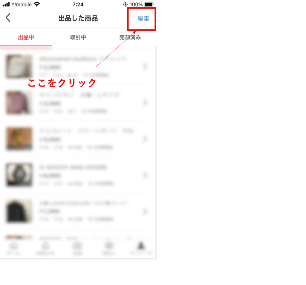 ①まず、自分の出品している商品一覧を開きましょう。