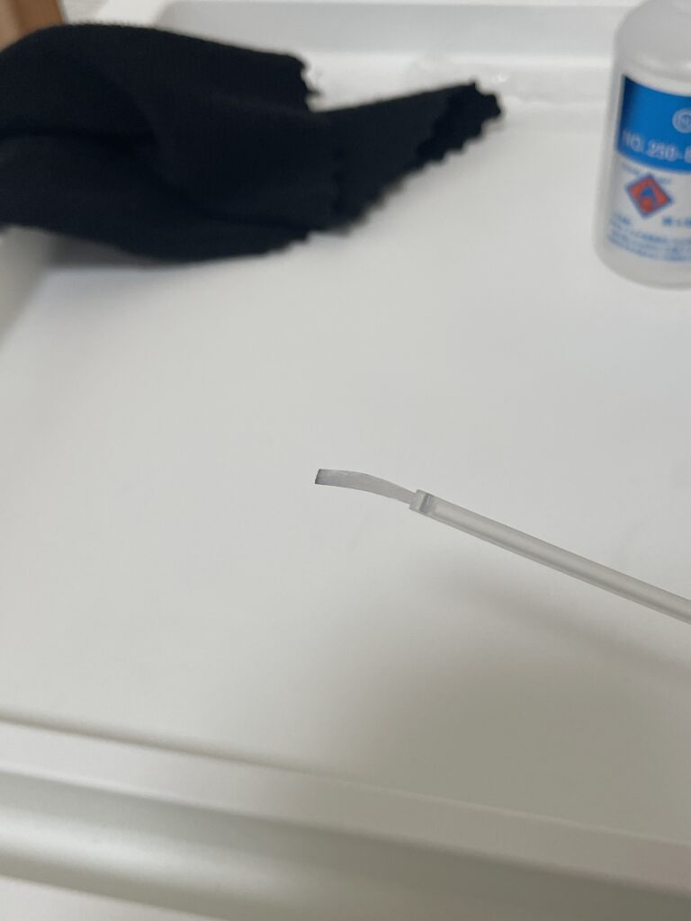 通常の接着剤だと断面に「厚み」が出て段差ができてしまいますが、この「セル・アセチ接着剤」は素材を溶かして一体化させるため、断面のズレがほとんど目立ちません。
