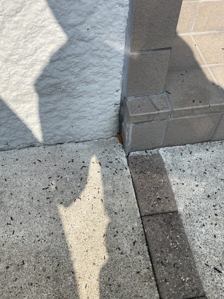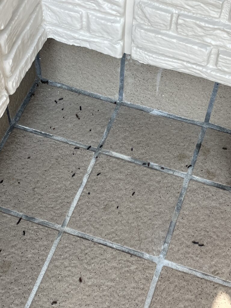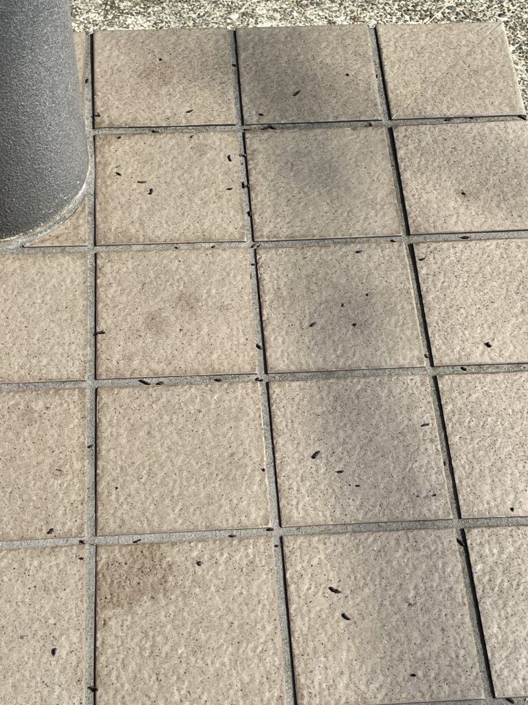 フンが水分を吸ってグチャグチャになり、玄関タイルにべったりとこびりつきます。