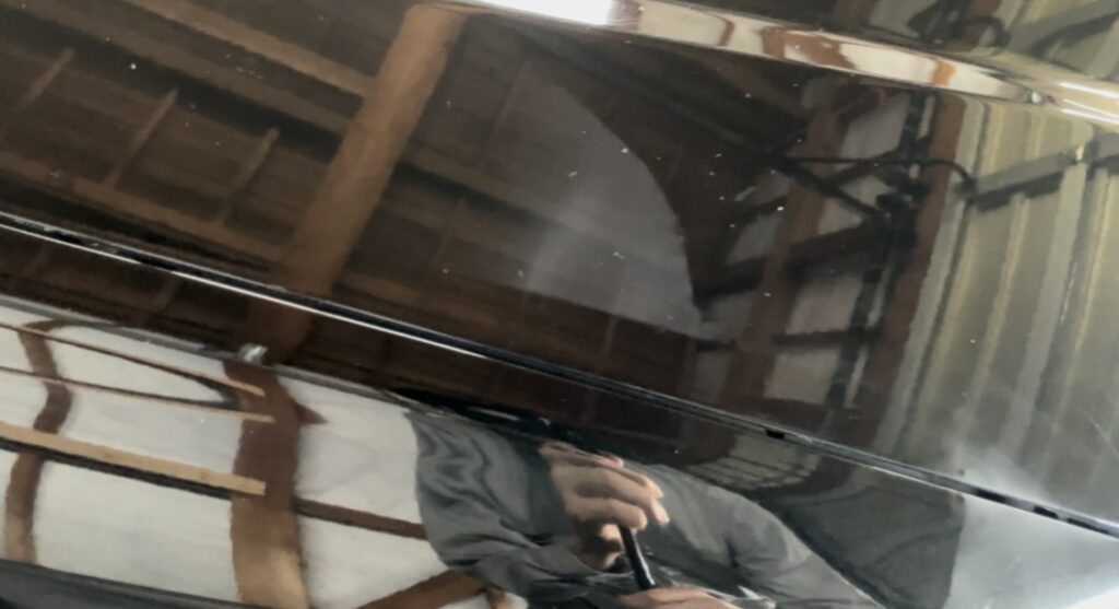 そしてこちらがクリア塗装後の状態。よくみるとクラックがめちゃくちゃ入っているが、新車のよう。