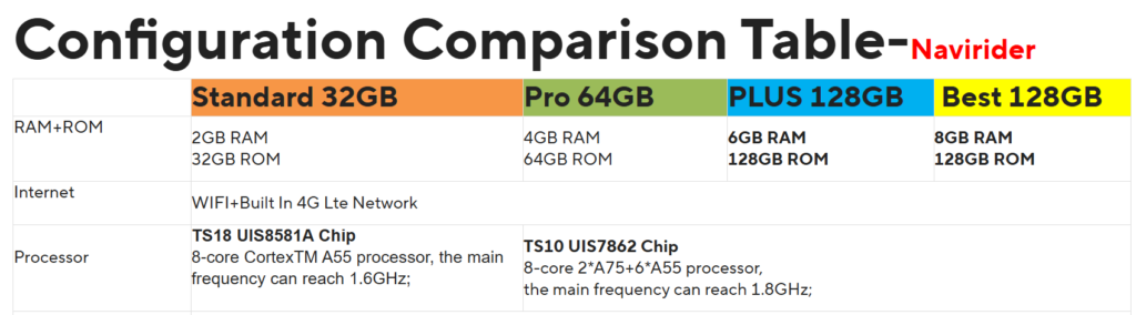| OS / CPU | 独自OS(車載専用) | Android 12/14 / UIS 7862S | Android 12 / UIS 7862S |