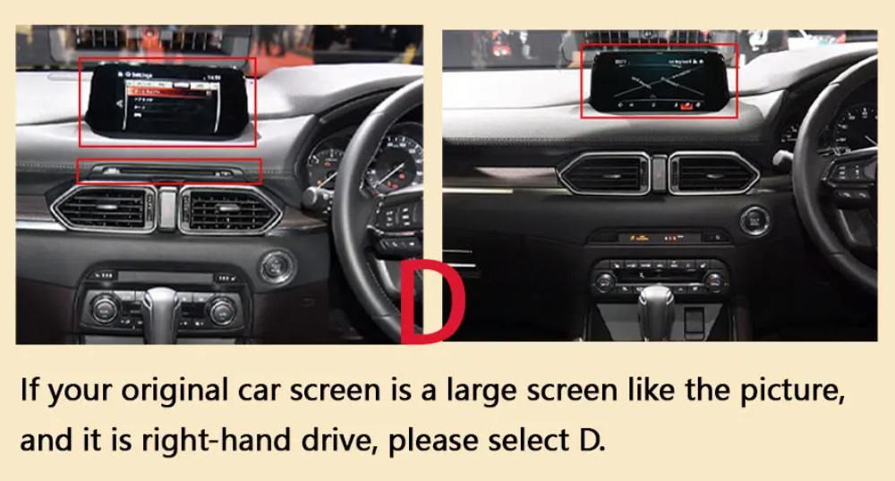 右ハンドル(RHD)対応の「Dモデル(7インチ純正車向け)」「Bモデル」があり、フィッティングの信頼性が高い。